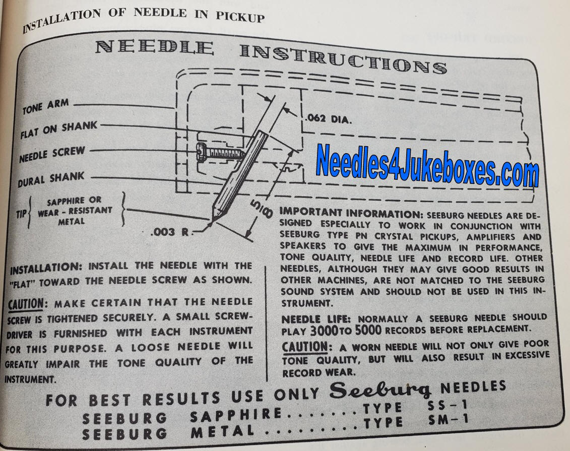 be able to find a match for the needle in your Seeburg jukebox.
