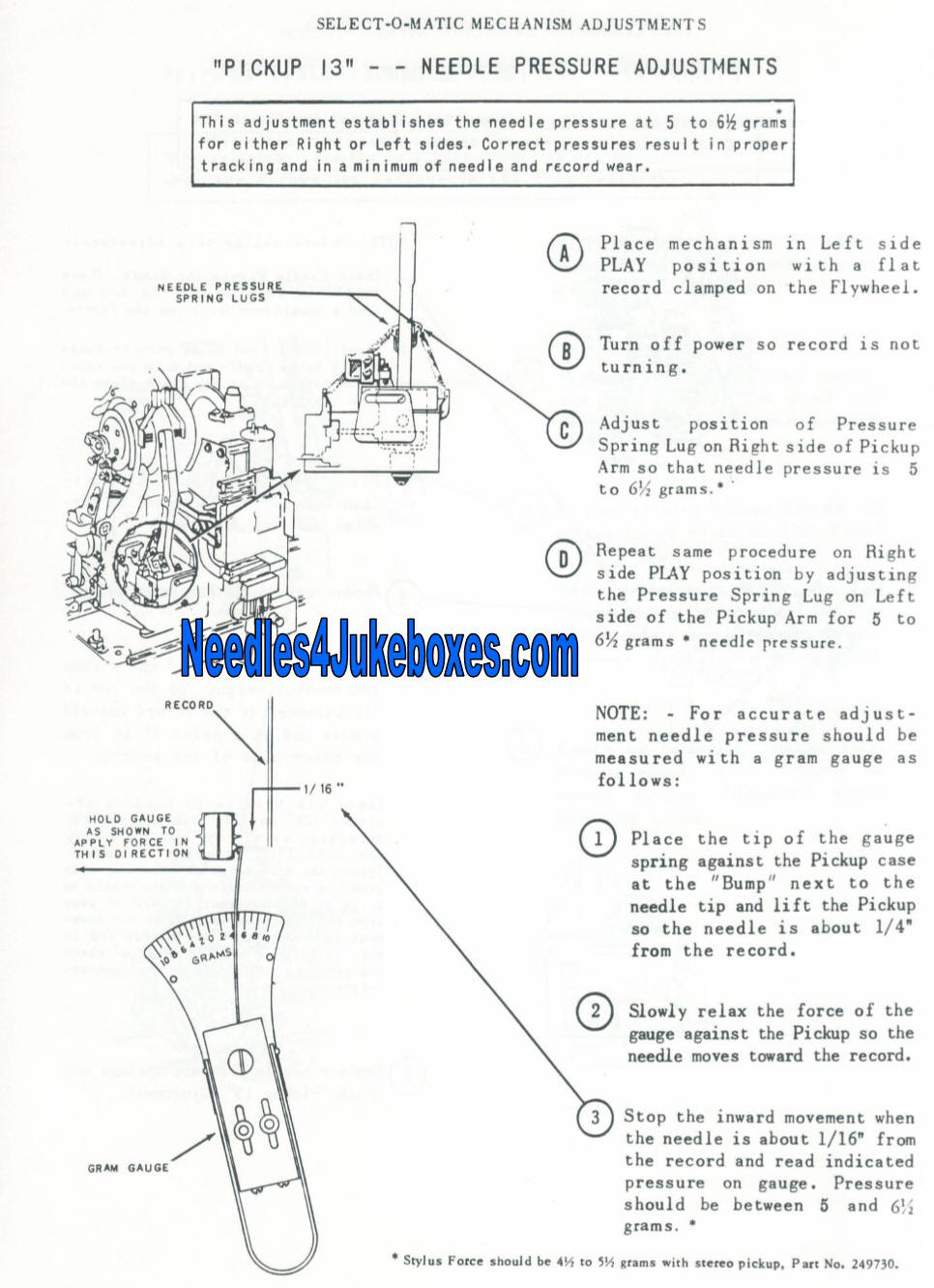 Seeburg Tracking Pressure Guide